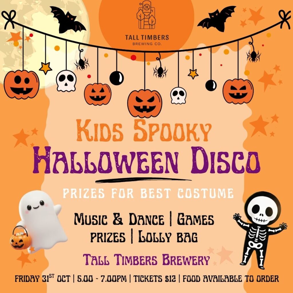 Expect face painting by @colourmefaceandbodyart games, prizes, lolly bags, a light-up dance floor, and some spooky beats for the kids!